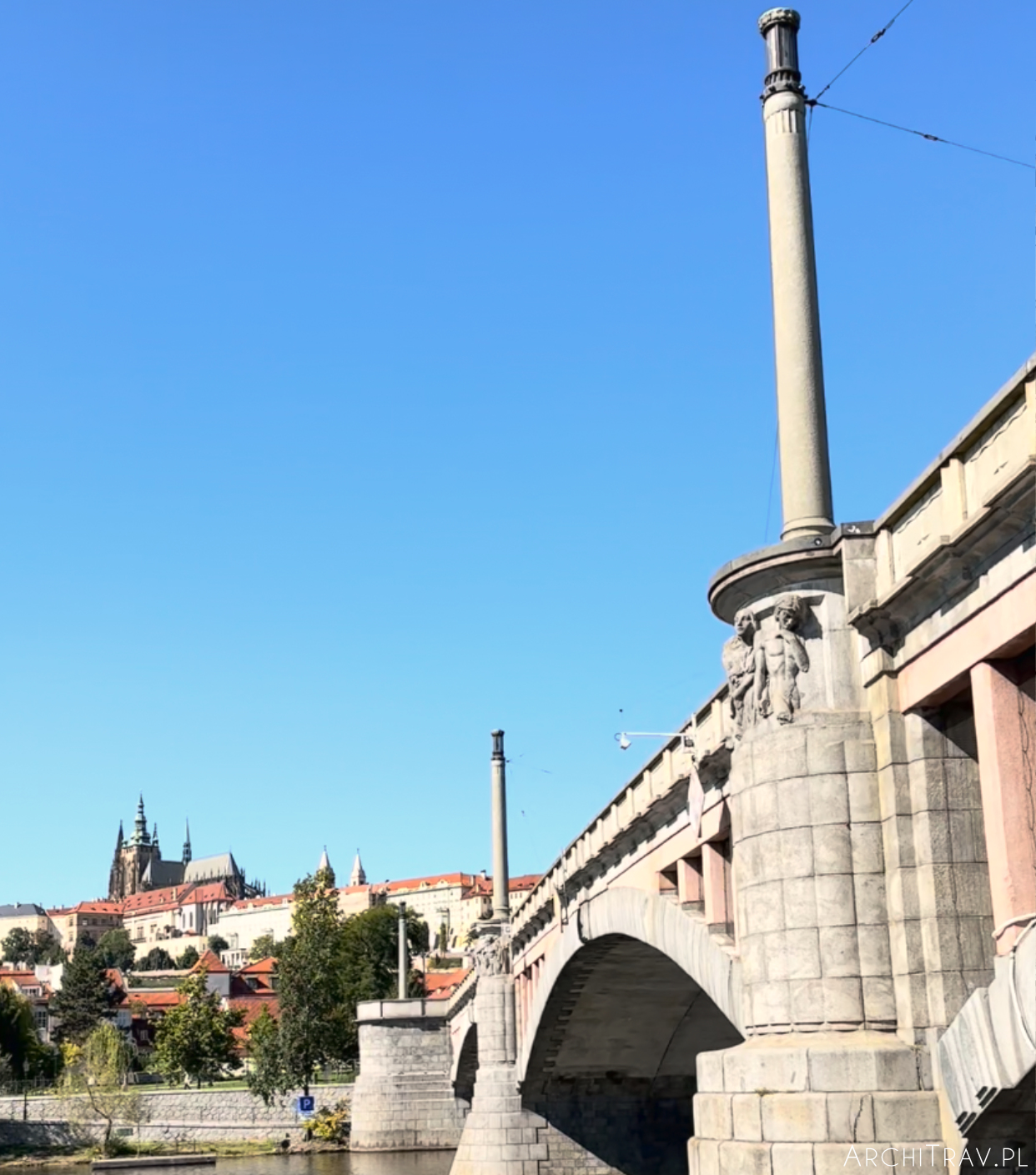 Znowu mijamy Most S. Čecha (ach, te detale!!!). Zobaczymy z tego miejsca Metronom górujący na Wzgórzu Letna, a chwilę później imponujące kształty Akademii Straka.