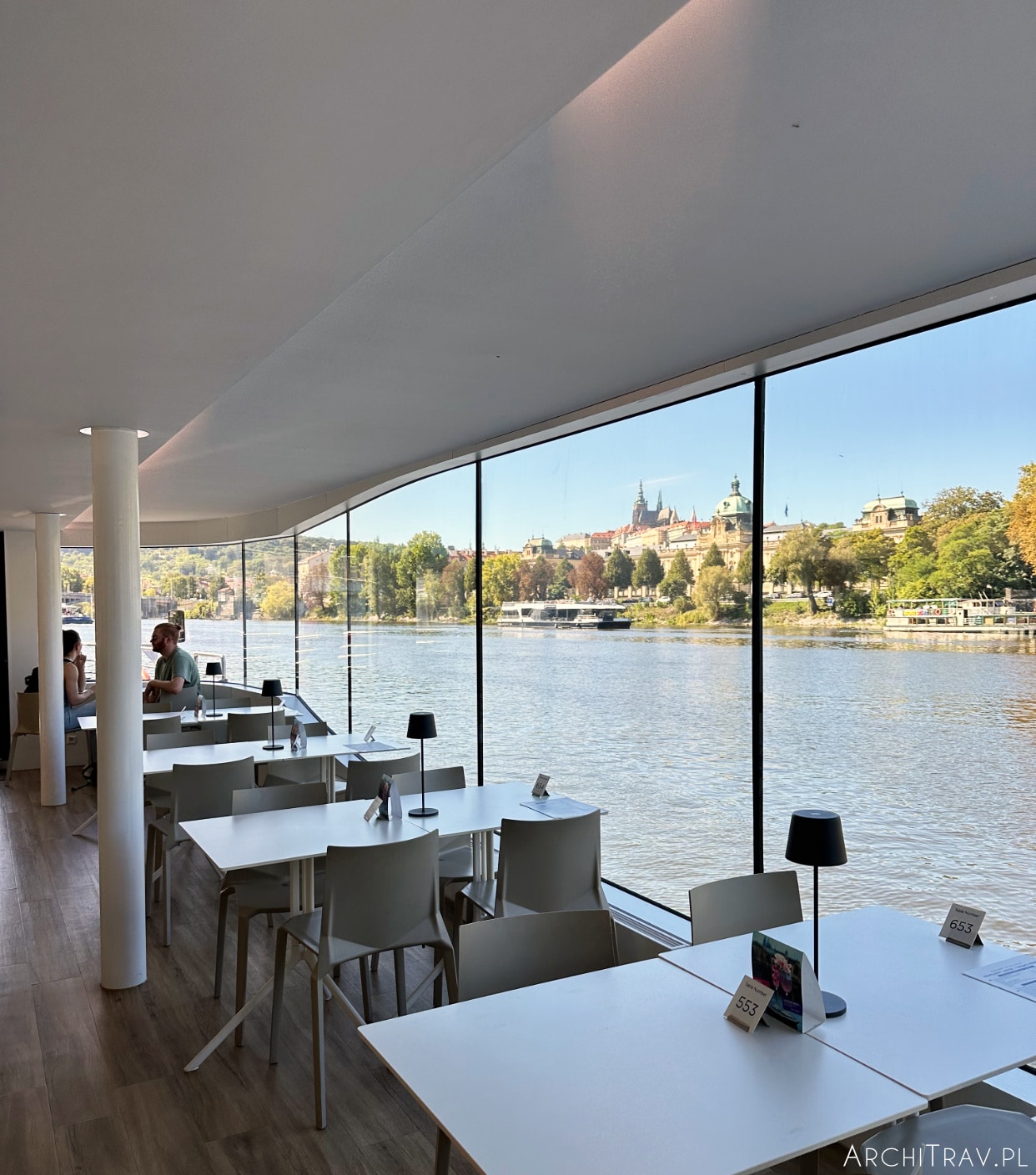 Na pierwszy rejs wybrałam firmę Prague Boats. Jest ona zdecydowanie najpopularniejsza, wydawała mi się solidna i uważałam, że nie zawiedzie moich oczekiwań. Tak też się stało! Płynęłam statkiem Anna Carolina, w pełni elektrycznym, dzięki czemu było cichutko i bez żadnych smrodków. Mogłam w pełni delektować się widokami. W tle z głośników wydobywały się delikatne dźwięki muzyki skomponowanej przez Antonína Dvořáka oraz krótkie informacje w kilku językach jakie obiekty właśnie mijamy. Ale spokojnie – jest to na tyle ciche, że można się „wyłączyć” i praktycznie nie zwracać na te dźwięki uwagi.