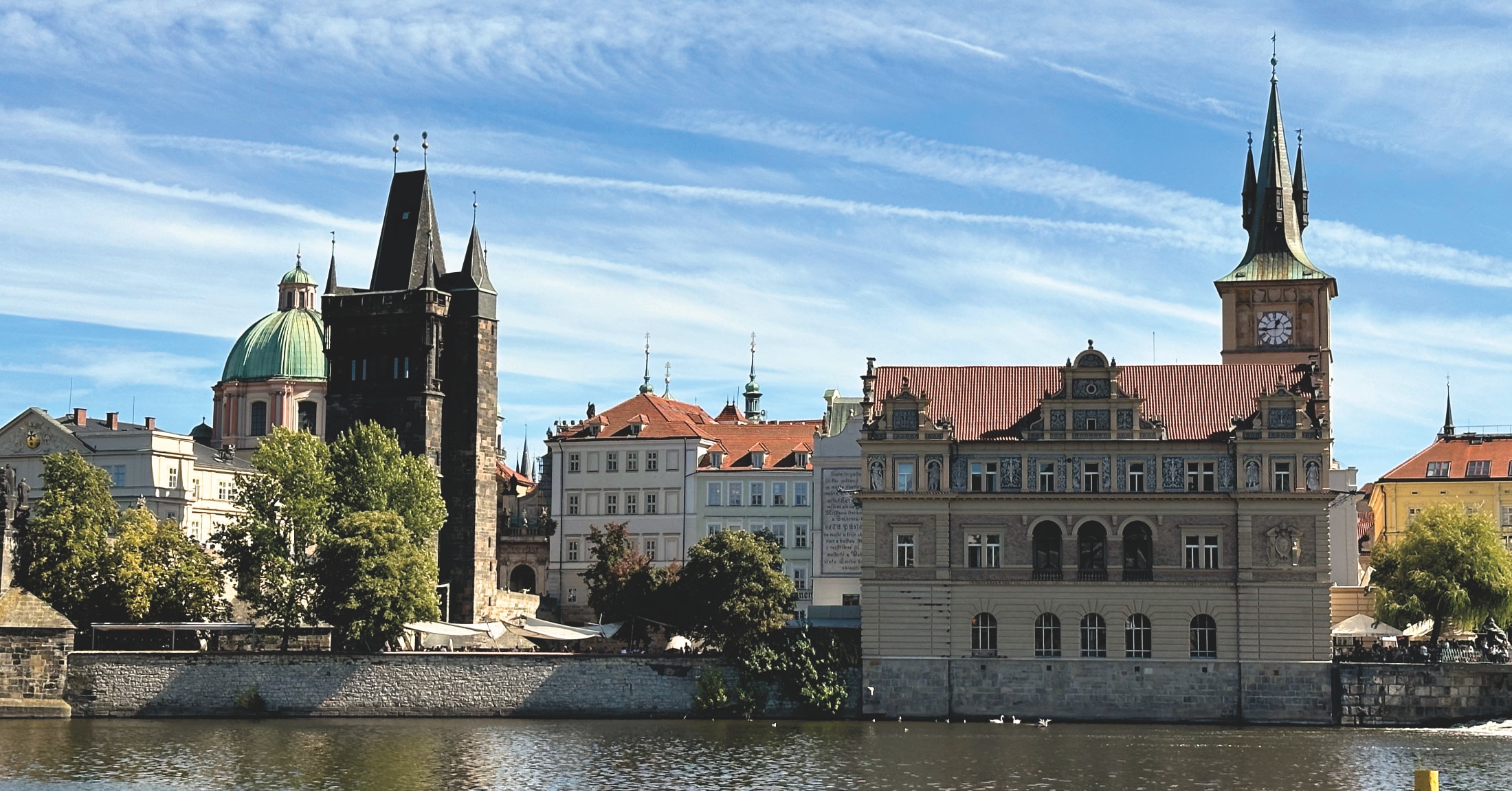 Suniemy powoli i w ciszy dalej… Most Mánesa, jesteśmy coraz bliżej najważniejszych punktów rejsu. Most Karola oraz widok na Malą Stranę – barokowy kościół św. Mikołaja i strzelista katedra św. Wita górująca nad miastem – i to wszystko z poziomu wody – widok zapierający dech w piersiach!
